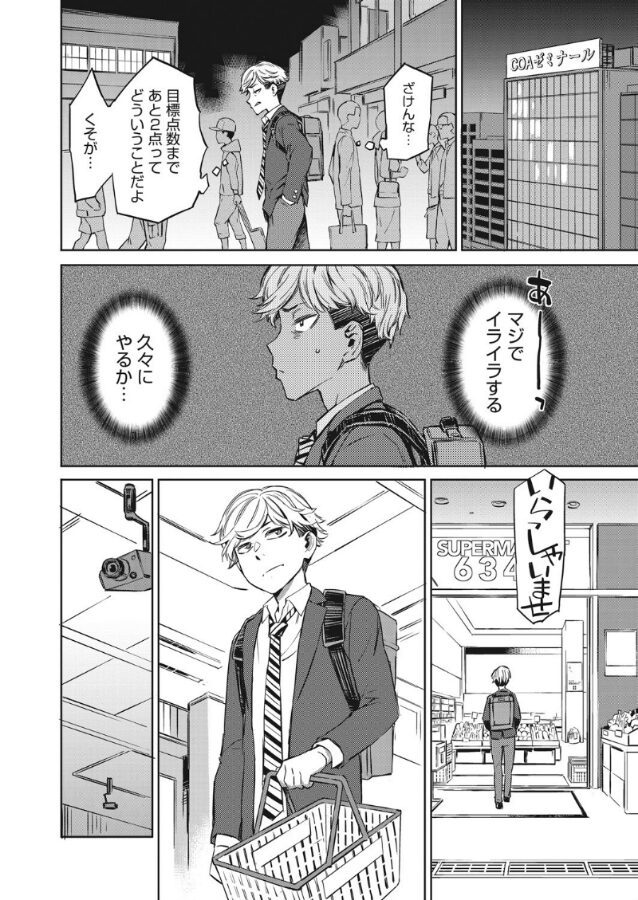 どうしてこんなことになってしまったのか…。ダンス大会で優勝、学年模試でも成績優秀なタカマツは、廃ホテルの一室で拘束され、間宮さんにフェラチオされている。きっかけは、予備校のテストでミスり、むしゃくしゃした帰りに万引きをしたところを、間宮さんに撮られていたからだ。脅されたタカマツは間宮さんに性器を弄ばれ…。