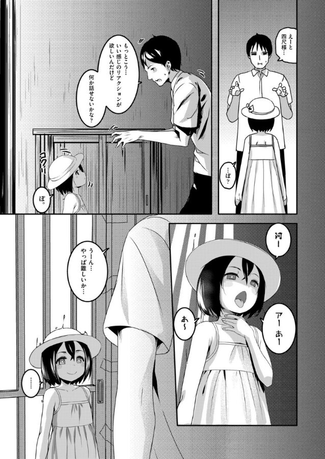 ××村に小さな女の子の怪異がいて取り憑かれた本人と一部の特殊な人間にしか見えないそうだ。人間ではないし怪異なら犯しても犯罪にならない、というやましいキモチでわざわざ引っ越してきて、都合よく憑かれ、部屋へ連れこめた。さっそく裸にしエロい事を始めるが、ち●ぽだけはギンギンなのに体にチカラが入らない…。